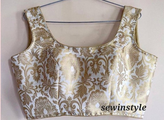 White Brocade Blouse Scoop Neck Blouse Indian Designer Etsy Ireland